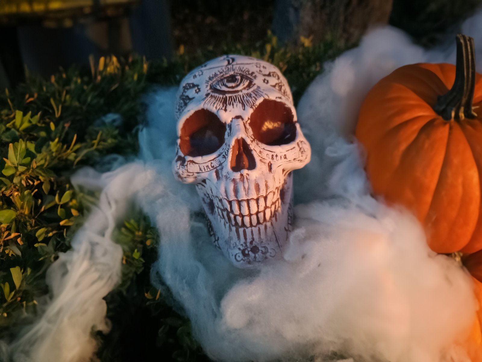 Skull with mystical signs and symbols as a scary decoration
